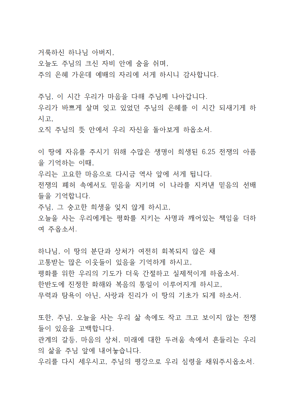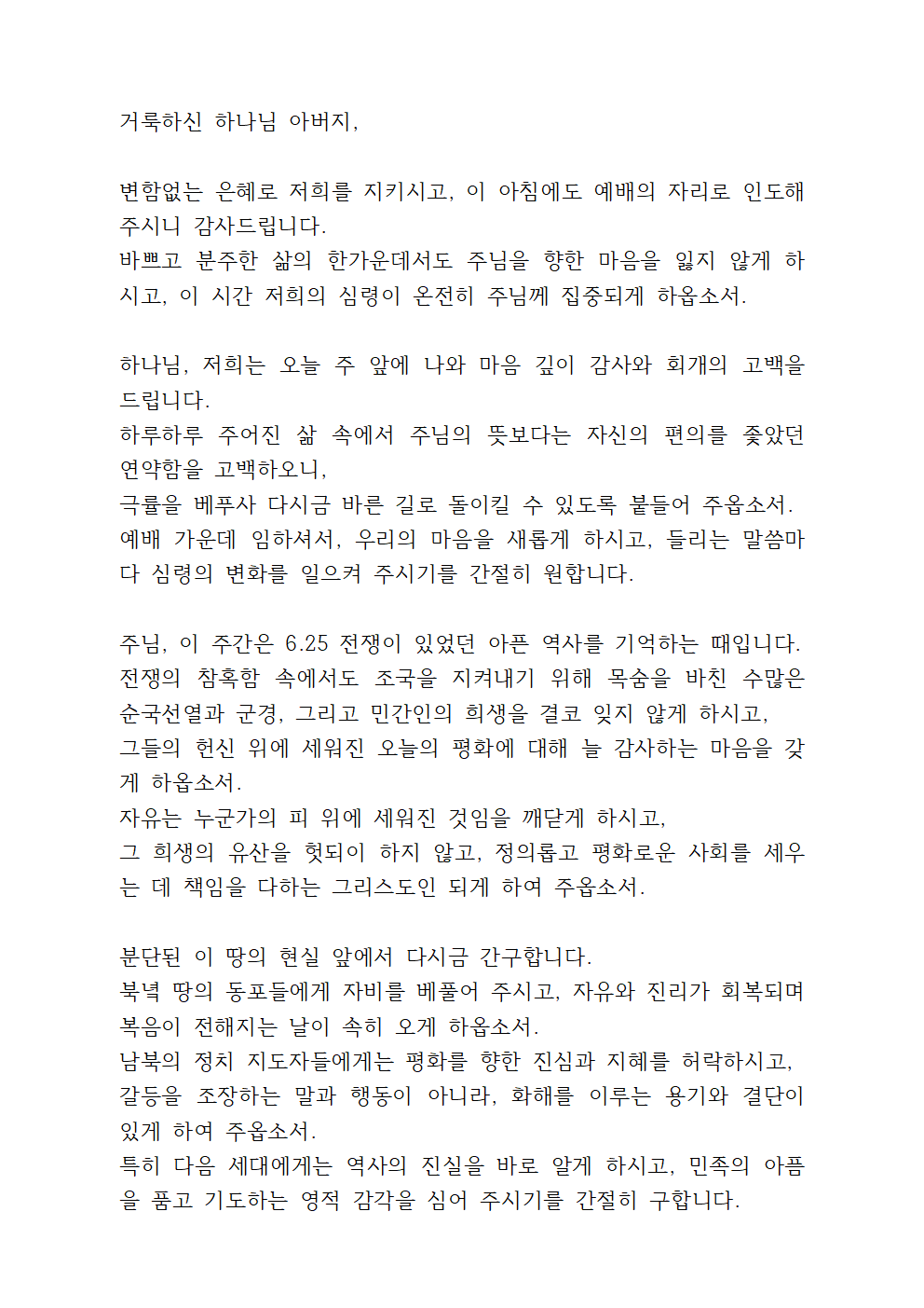 6월 넷째주일낮예배 대표기도문 (2)