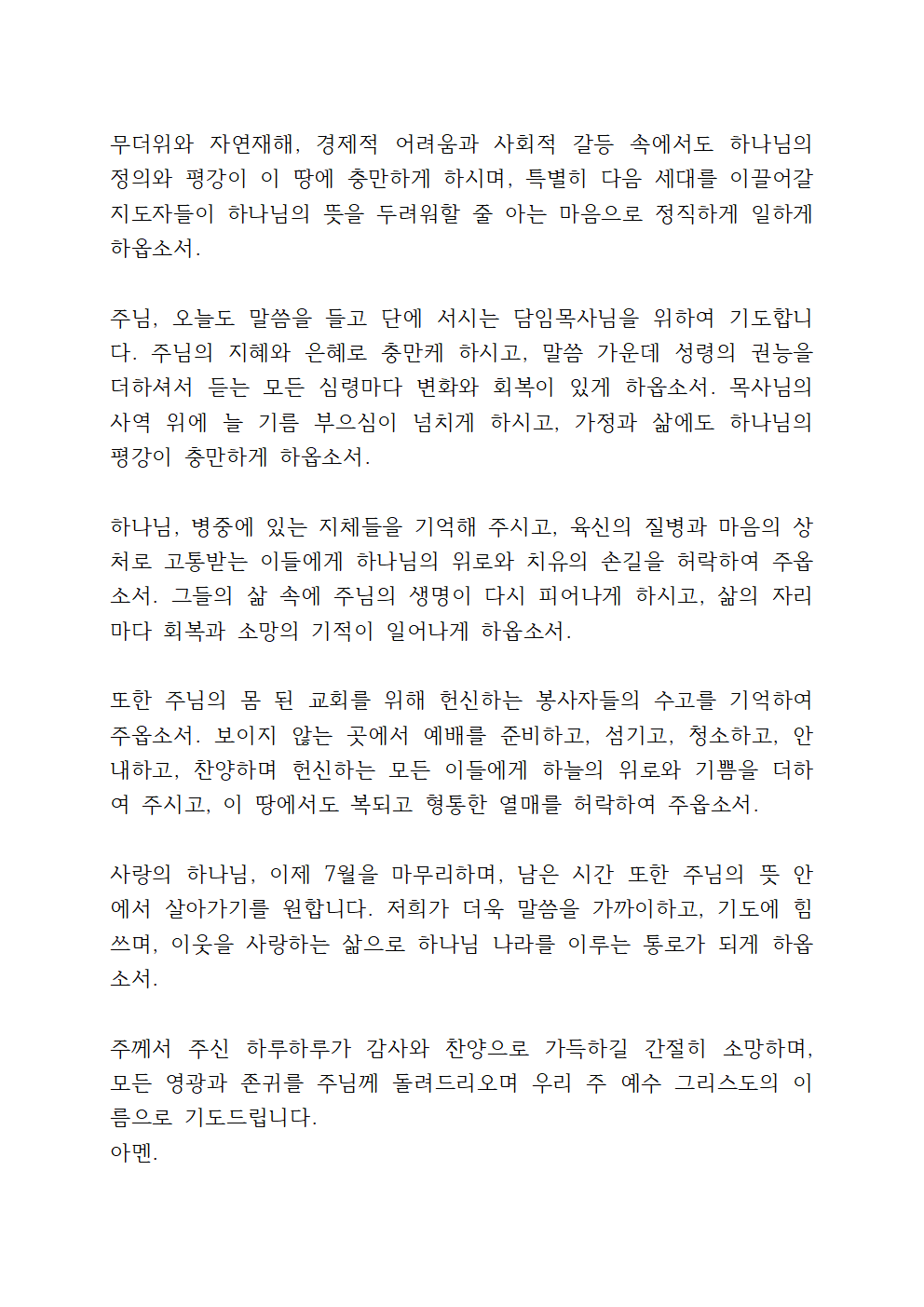이번 글에서는 7월 대표기도문 모음을 안내해 드리겠습니다.
