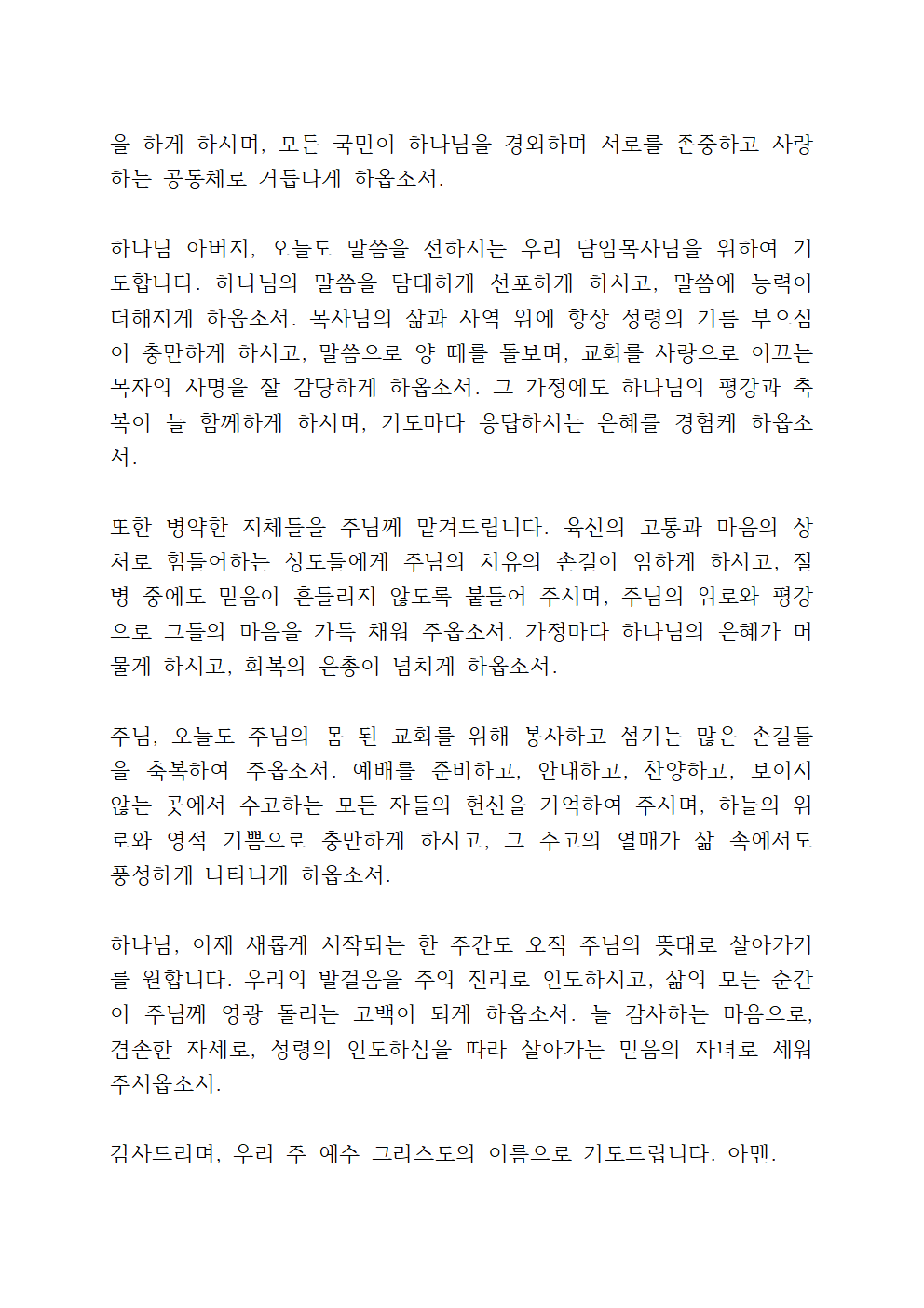 우리 주 예수 그리스도의 이름으로 기도드립니다.