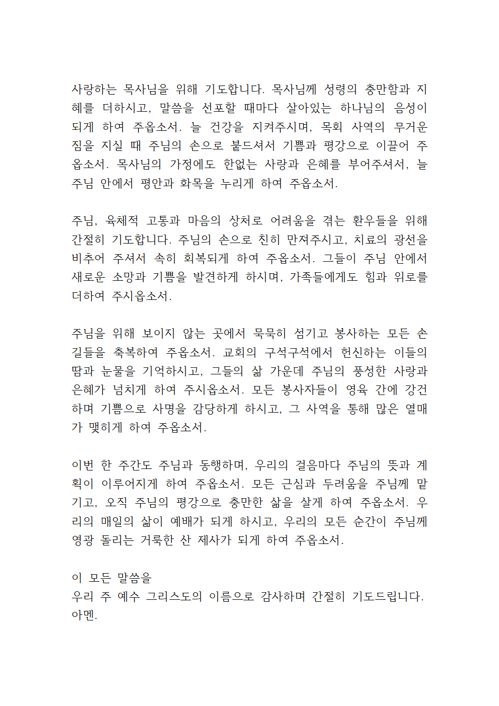 ※ 다음 기도문을 참고해서 함께 기도해 보세요.