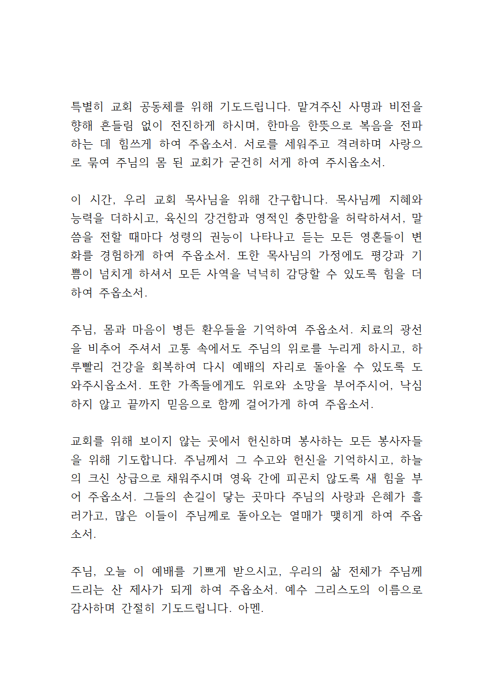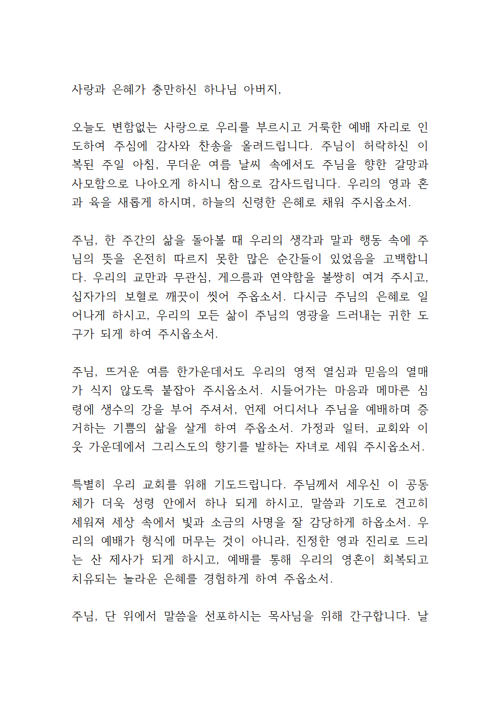 7월 주일낮예배 대표기도문 모음 (hwp 첨부)