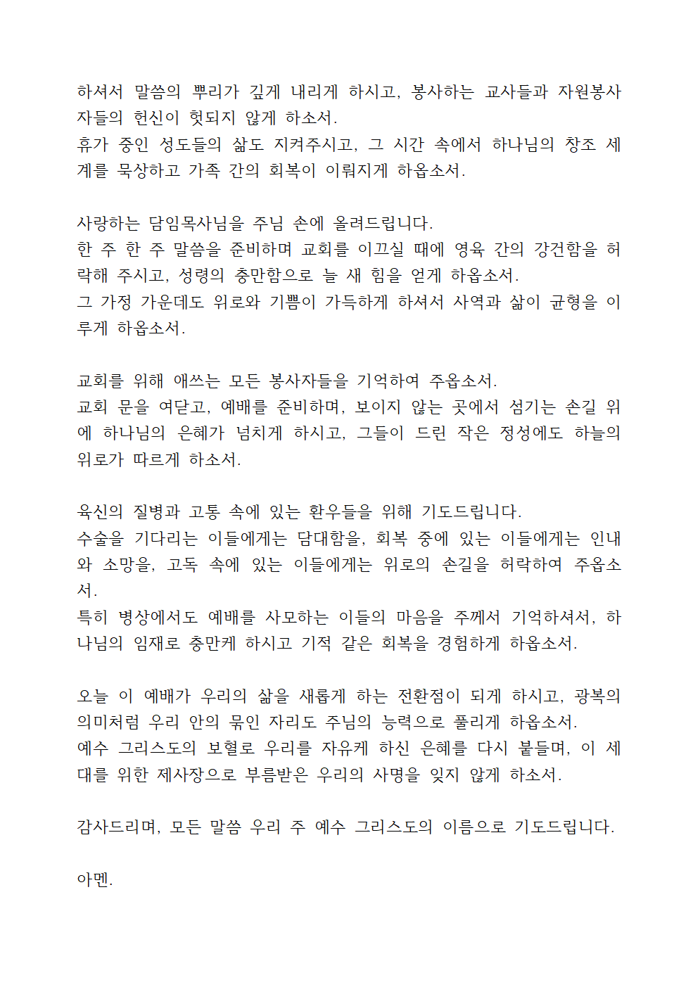 이번 글에서는 8월 2주 대표기도문을 안내해 드리겠습니다.