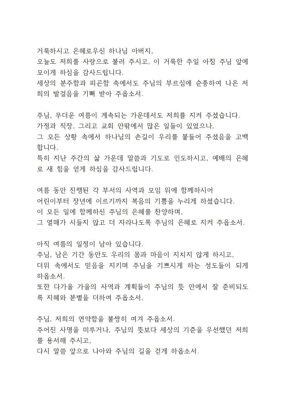 이번 글에서는 8월 4주 대표기도문을 안내해 드리겠습니다.